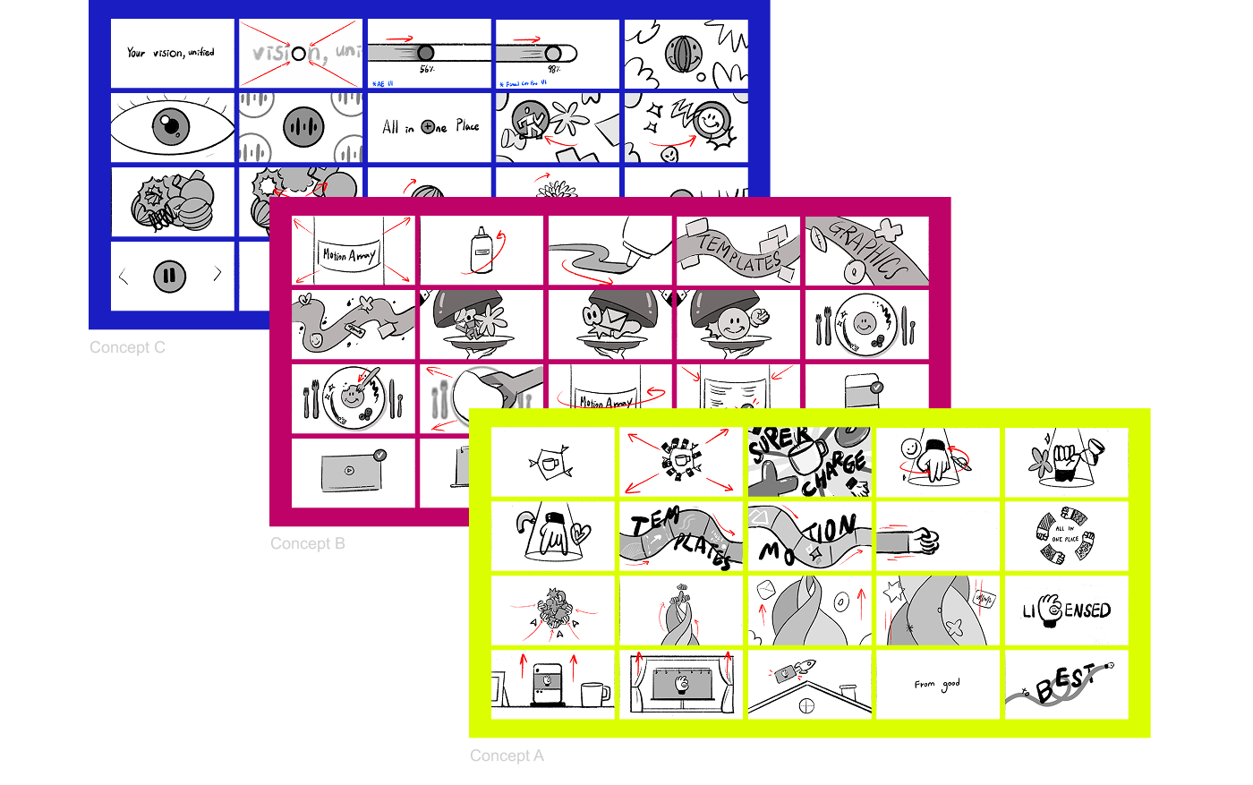 The primary objective was to illustrate how the Motion Array library could enhance the speed and output quality of their design and animation teams, without being perceived as a replacement for their highly skilled in-house talent. It was important to position Motion Array Business as a powerful tool that made upskilling staff and enhancing their creative output possible.